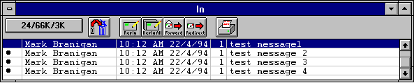 If the 'In' mailbox is not already open, select In from the Mailbox menu. Unread messages are designated by a bullet (o) in the far left column of the message summary. Double-click anywhere on a message summary to open the message. Incoming messages are saved indefinitely in the In mailbox until they are deleted or transferred to another mai lbox.
