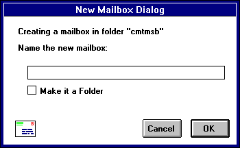 Type in the new mailbox name and click OK. The mailbox is created and added to the Mailbox and Transfer menus.